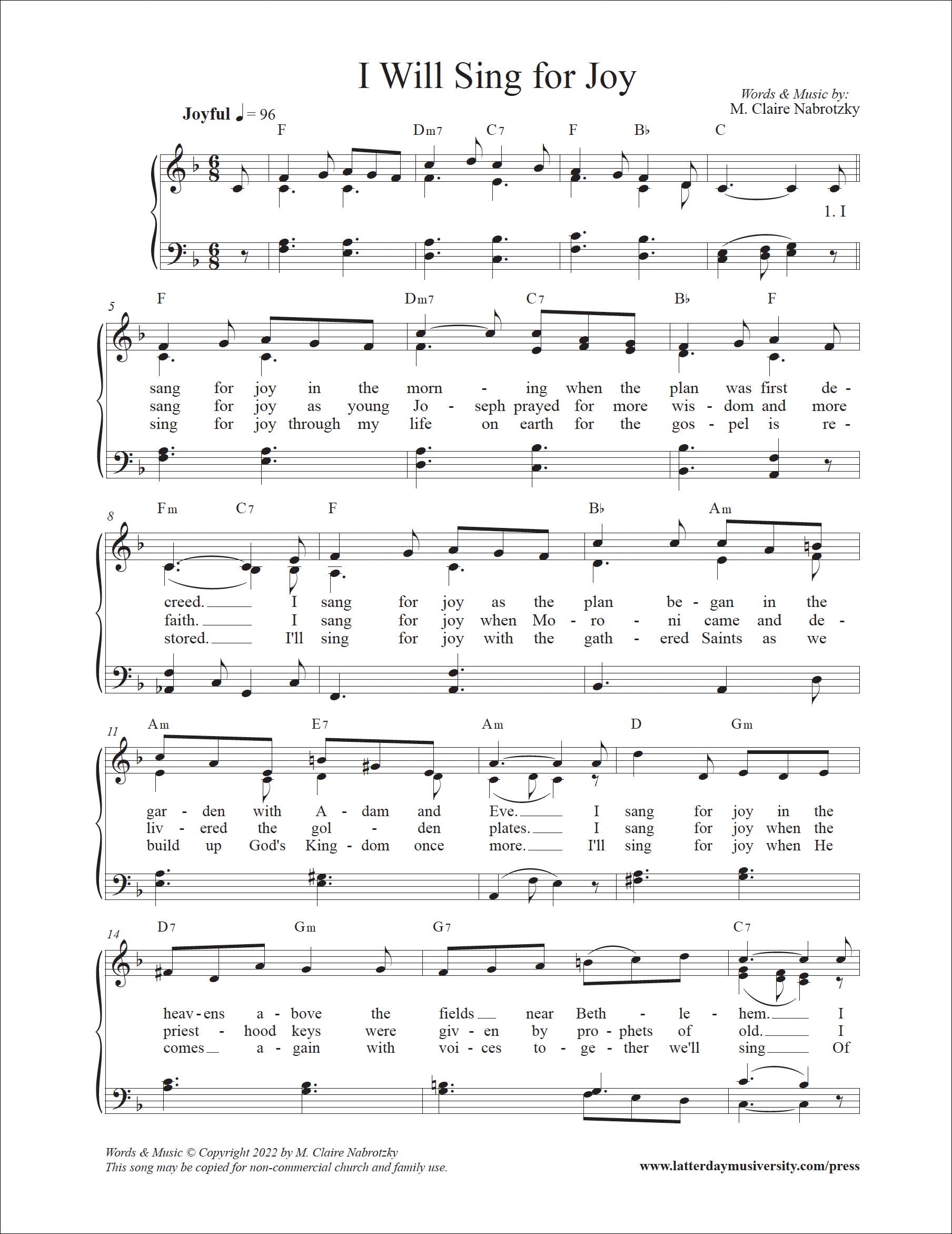 I Will Sing for Joy